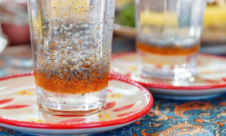 - اگر شربت بیدمشک با تخم شربتی را تهیه میکنید تخم شربتی را ابتدا در مقداری آب ولرم خیس کنید تا کامل پف کنند و حبابی شوند.