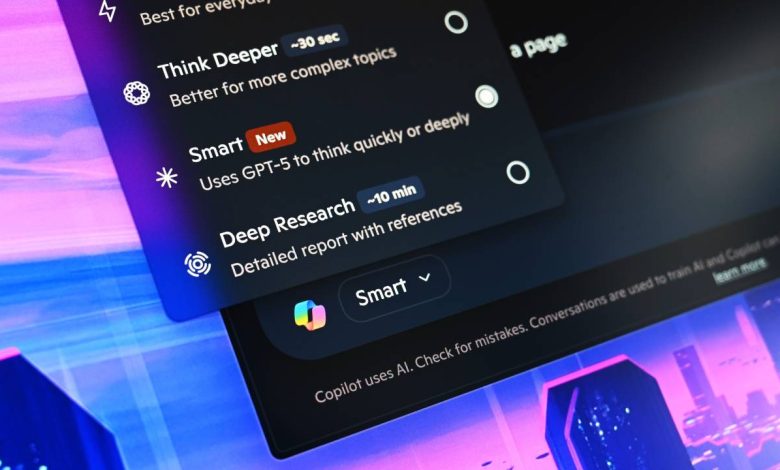 علاقهمندان به هوش مصنوعی که نیاز به دسترسی سریع به GPT-5 از طریق یک برنامه چتبات دارند، میتوانند این مدل را در برنامه مایکروسافت کوپایلت تجربه کنند. کافی است مدل جدید Smart (GPT-5) را که در بخش ساخت پرامپت انتخاب کنید. این مدل جدید بر حسب کاری که به آن محول میشود، روش پاسخدهی سریع یا تفکر عمیق را انتخاب میکند.